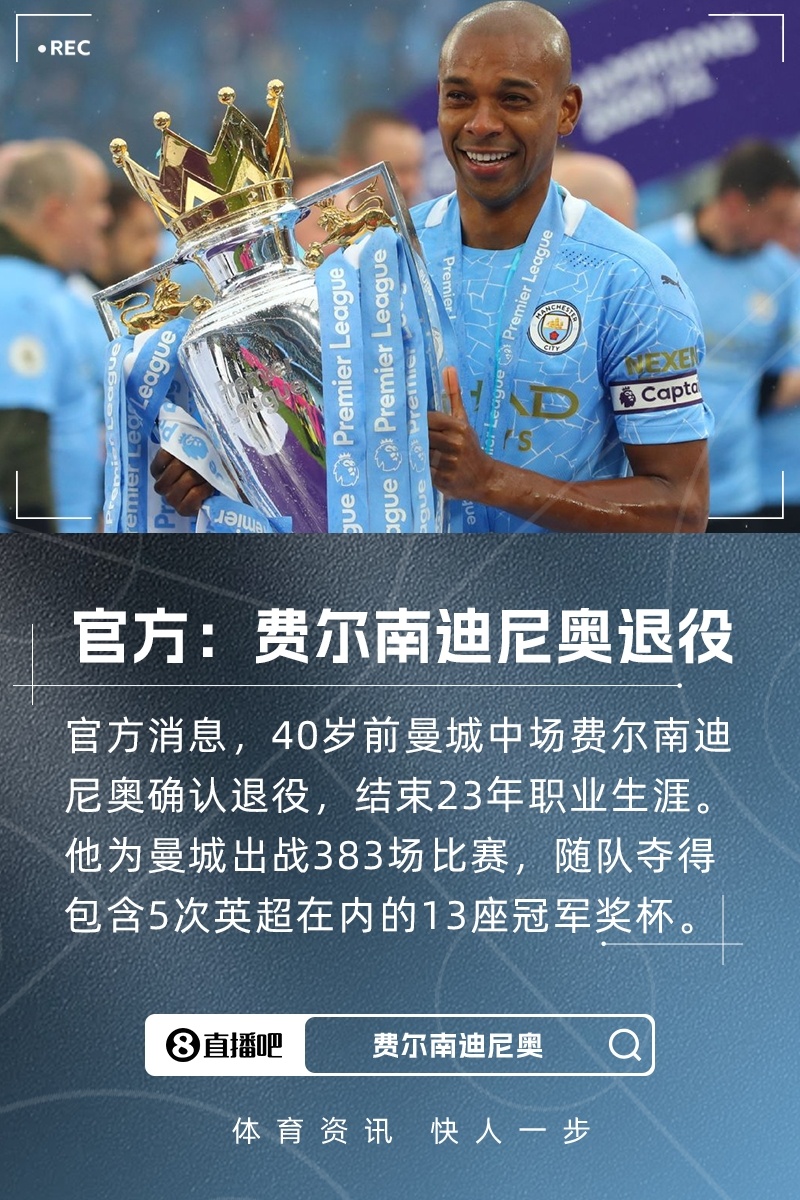 邂逅费鸟!官方:40岁费尔南迪尼奥退役,服从曼城383场13冠