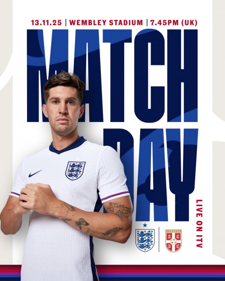 英格兰队发布对阵塞尔维亚海报:斯通斯单东谈主出镜