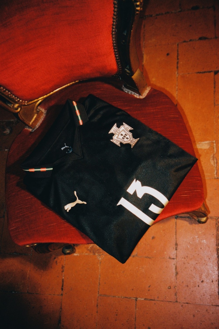 这套球衣由彪马策画坐蓐,球衣主体为玄色,衣袖和衣领处有葡萄牙国旗配色。