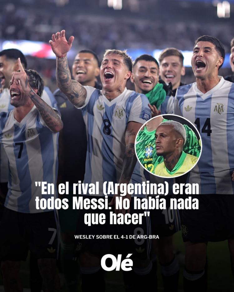 韦斯利谈巴西1-4阿根廷:那天敌手个个王人像梅西,咱们窝囊为力
