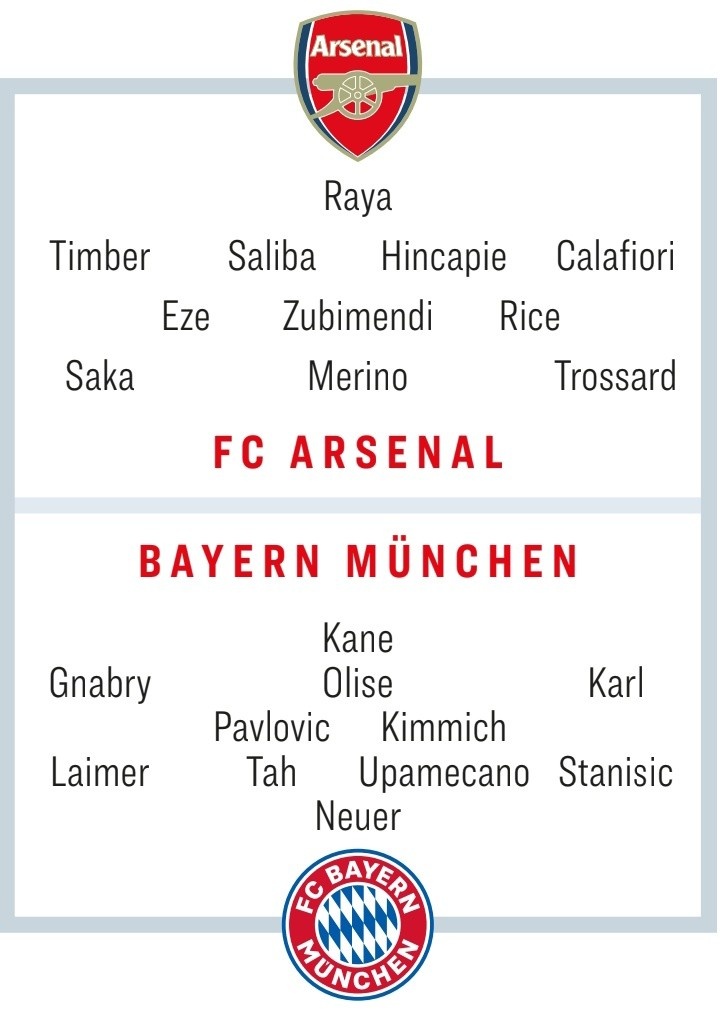 11月24日讯 拜暖和阿森纳在本轮联赛各自获取大捷,两队也将在周中迎来欧冠榜首之争,拜仁作念客挑战阿森纳。《踢球者》也臆测了两边首发: