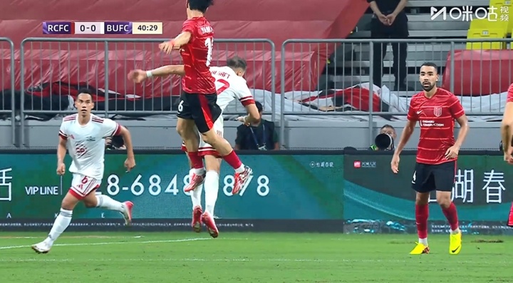 第40分钟,杨明洋争顶被裁判吹罚犯规,蓉城球员纷纷暗意不悦