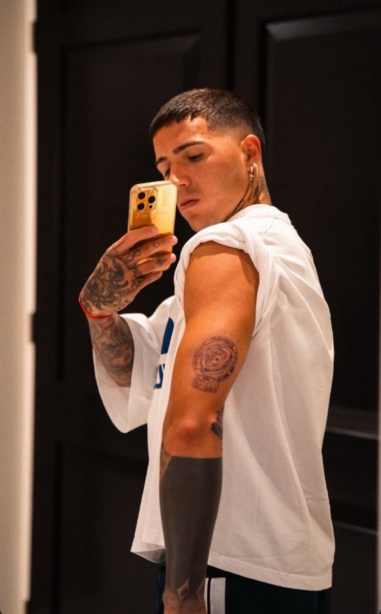 8月20日讯 日前,切尔西中场球员恩佐在左臂上纹上了世俱杯奖杯图案,以一种独到的样貌缅念念球队的荣誉本领。