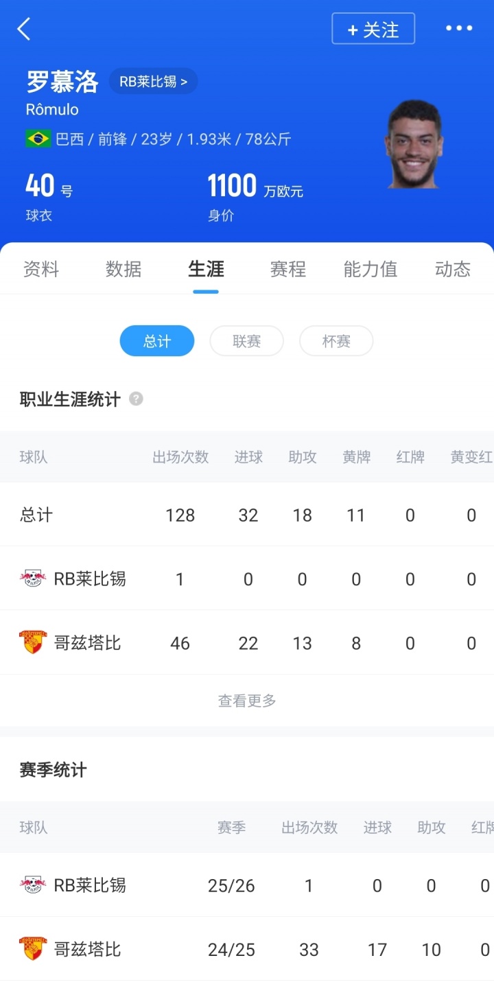 今夏动作舍什科的替代者,罗慕洛以2000万欧固定转会费+500万欧浮动加盟莱比锡。