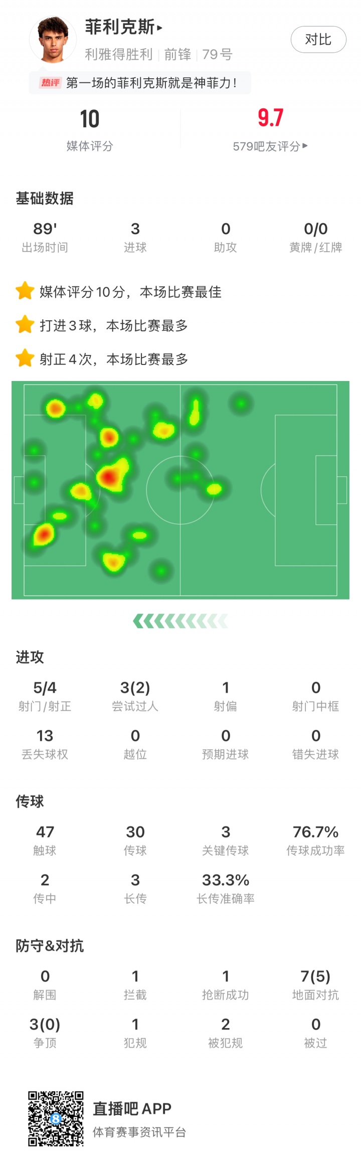 08月30日讯 菲利克斯迎来沙特联首秀,5次射门4次射正献技帽子戏法,孝顺3次关节传球,匡助利雅得奏凯5-0客胜布赖代互助。