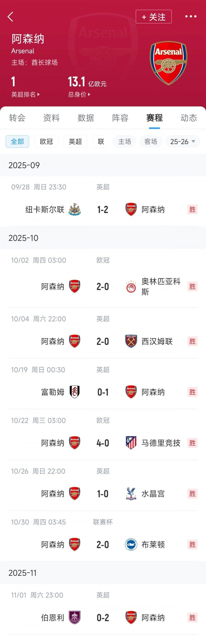 枪手近期依然保抓了7场0失球,他们上一次丢球是在9月底的英超,被沃尔特马德头球砸穿球门。