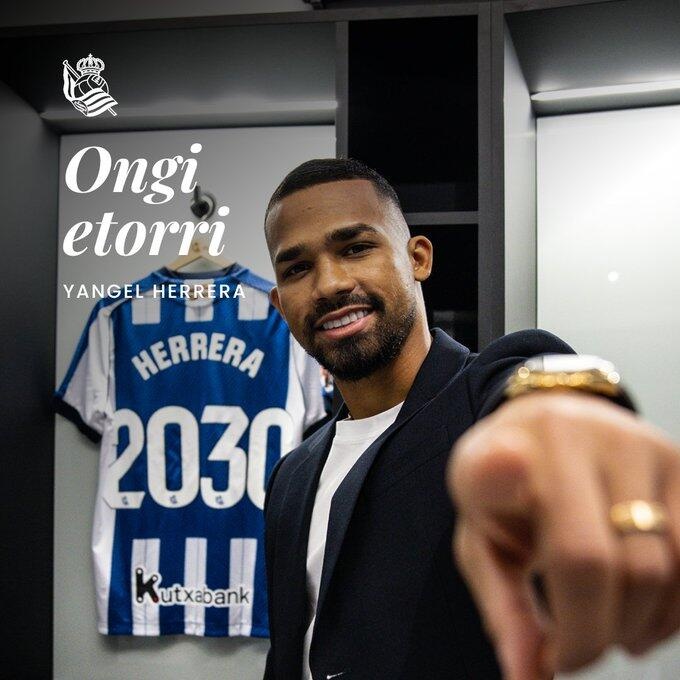 官方:皇家社会从赫罗纳签下Y-埃雷拉,两边签约5年