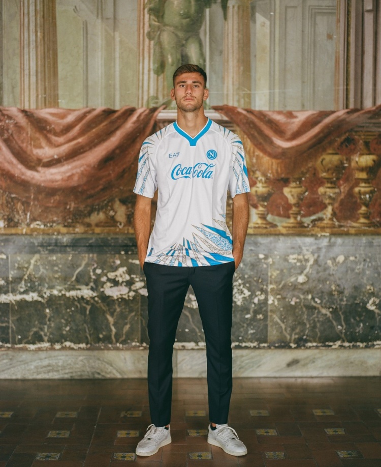 计算亮点是球衣上的地砖几何图案:这一计算理念很是致意了坎帕尼亚地区的波旁王室居所:波蒂奇皇宫,计算连合了历史的优雅和畅通的当代感,造成了前锋与足球的私有连合。并以金色点缀,唤起了皇家居所的秘密作风。开放且当代的计算线条再行施展了壁画和马赛克的丽都。