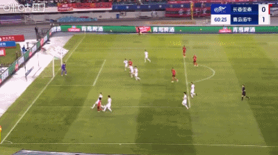补时阶段,谭龙为亚泰扳回一城,1-2海牛。